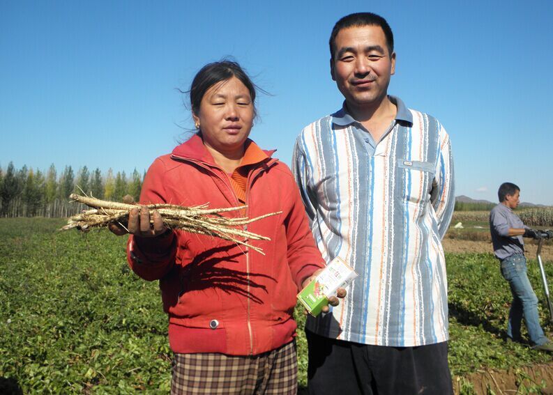 3月2日至6日,記者驅車(chē)數千里,在大蒜主產(chǎn)區山東金鄉、河南杞縣、中牟,花生主產(chǎn)區河南開(kāi)封、正陽(yáng)、內黃、延津、民權等地采訪(fǎng),所到之處,農技部門(mén)極力推薦,農民無(wú)不夸獎,易生科技“植物細胞裂變技術(shù)”之核心產(chǎn)品--“植物DNA激活酶”,被各地農民稱(chēng)贊為“地下狂長(cháng)”、“地下狂銀”、“地下狂增”、“地下狂金”的地下四狂,被譽(yù)為易生科技地下四寶。短短三年的時(shí)間,已被廣泛應用于地下塊莖、球莖、鱗莖等作物達千萬(wàn)畝次,通過(guò)葉面噴施2-3遍均能達到抗病、抗旱、抗凍、改善品質(zhì)、增加產(chǎn)量20—30%以上,個(gè)別作物可增產(chǎn)30—50%。記者在采訪(fǎng)中聽(tīng)到一位農技人員隨口說(shuō)出的一句順口溜:地下狂長(cháng)噴三遍,一畝能收一畝半。是農民對易生科技“植物細胞裂變技術(shù)”之核心產(chǎn)品--“植物DNA激活酶”神奇增產(chǎn)效果的總結和真實(shí)感言。農民高興的對記者說(shuō):“植物DNA激活酶”是當代農民打開(kāi)農業(yè)地下經(jīng)濟黃金寶庫的金鑰匙,是引爆農業(yè)根莖作物產(chǎn)量倍增的原子彈。